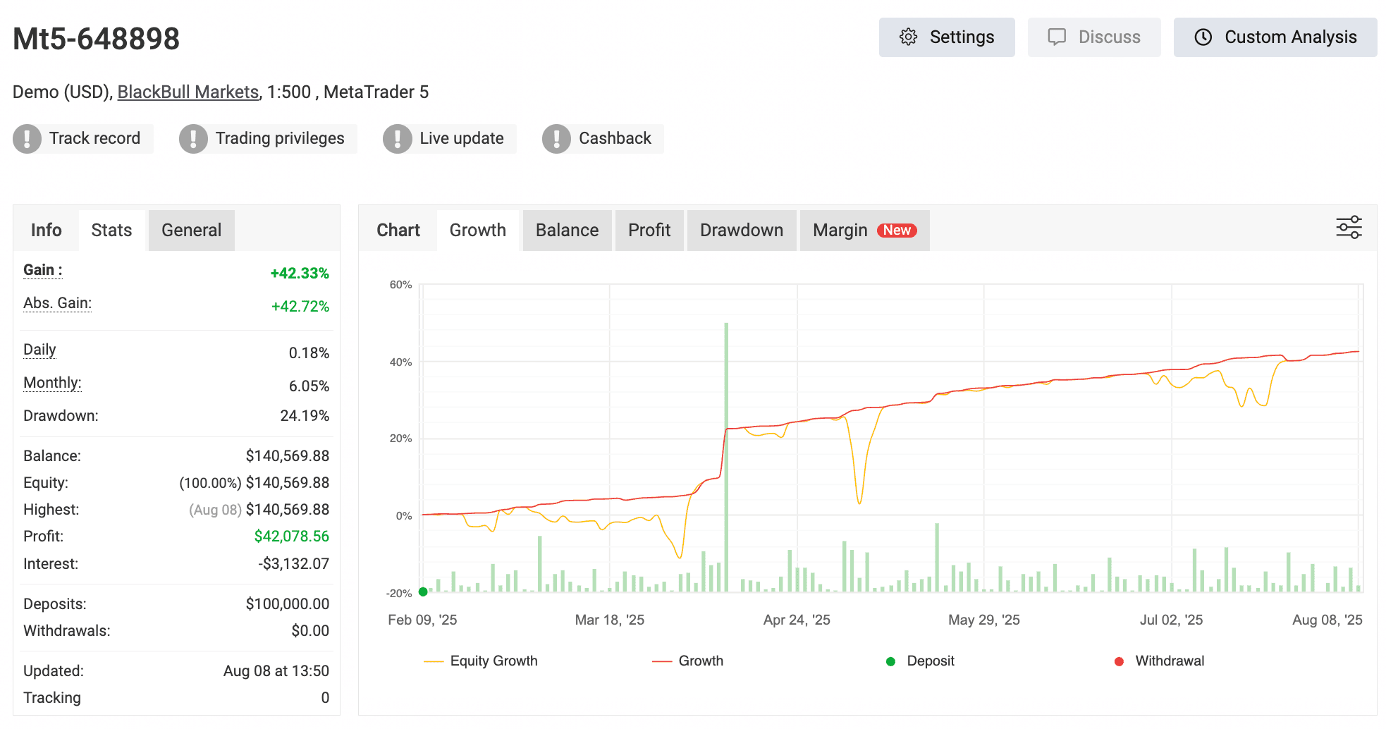 Our proprietary Banker EA uses advanced mathematical models to identify high-probability trading opportunities across forex, metals, and indices. The algorithm analyzes market patterns, price action, and volatility to execute trades automatically—removing emotion and human error from your trading.